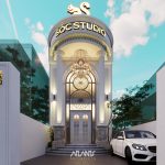 Không gian mang hơi thở của Paris thanh lịch, với tông màu trắng kem, vàng champagne, nhấn bằng hệ đèn pha lê lấp lánh, phào chỉ tinh xảo và những đường cong mềm mại. Thiết kế hướng tới trải nghiệm thị giác cao cấp và tạo chiều sâu cảm xúc cho khách hàng khi bước vào.